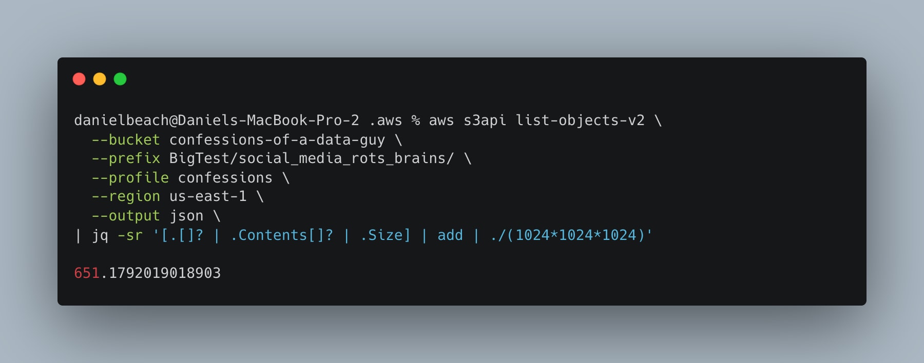16 minutes. Heck, it seems like a single node can handle 650GB of data. Didn’t even play with any settings. Indeed, using vim, I can see the local file was written out with the results.