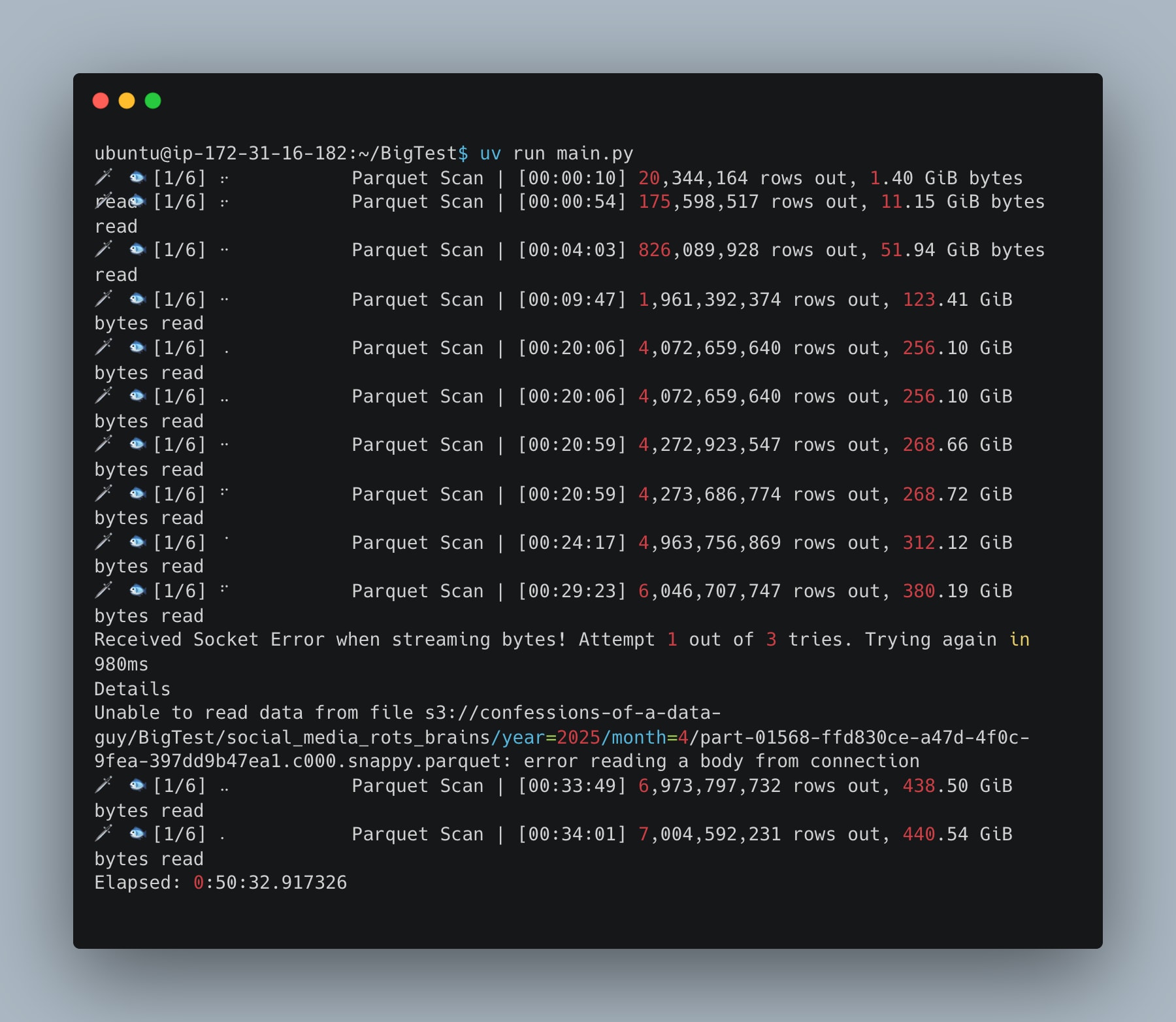 Basically, at this point, I left my laptop to run all night and went to bed. To sleep troubled dreams of AWS bills.