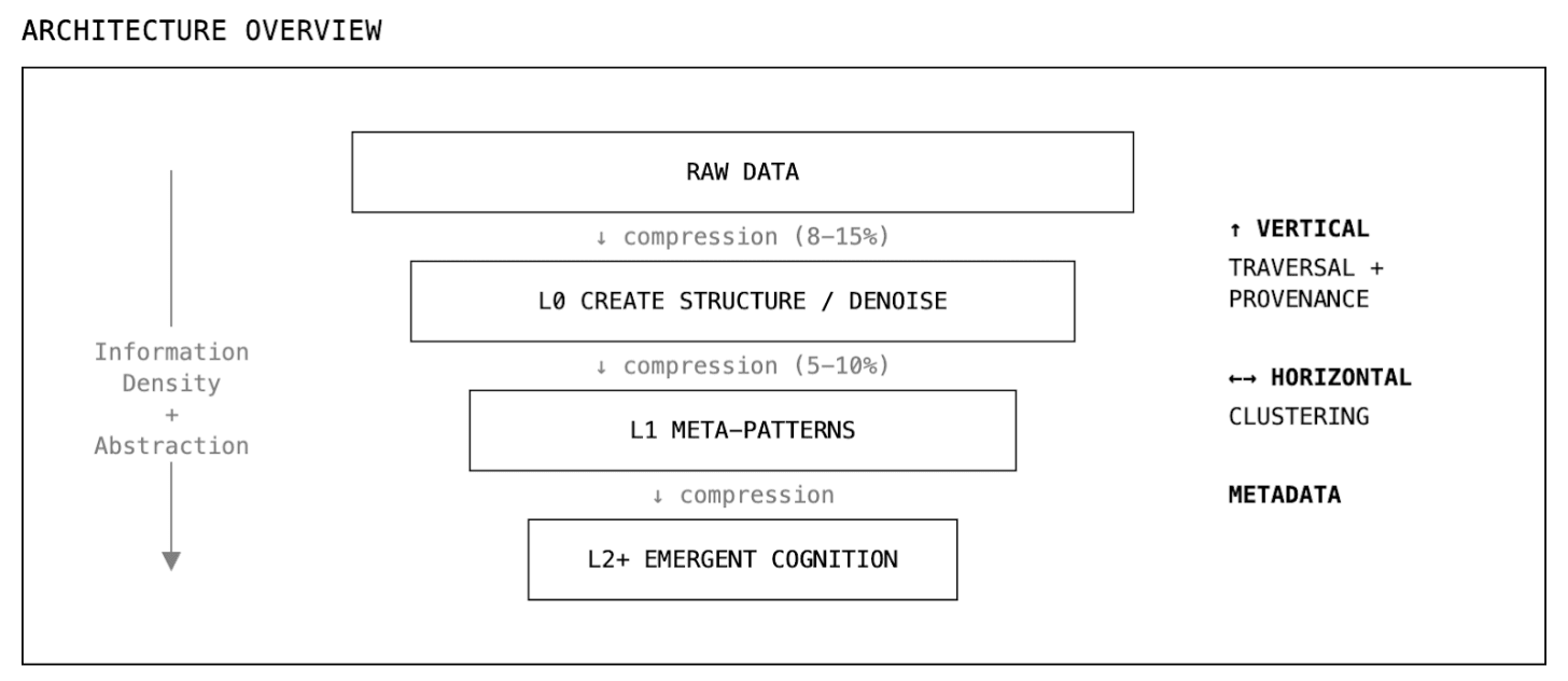 With navigable data structures, LLMs can traverse vertically (detailed to abstract) and horizontally (connections at the same level) to answer questions. Instead of jamming 100K tokens of raw messages into context, why not give it 7 L1 patterns and 32 most relevant L0 events?