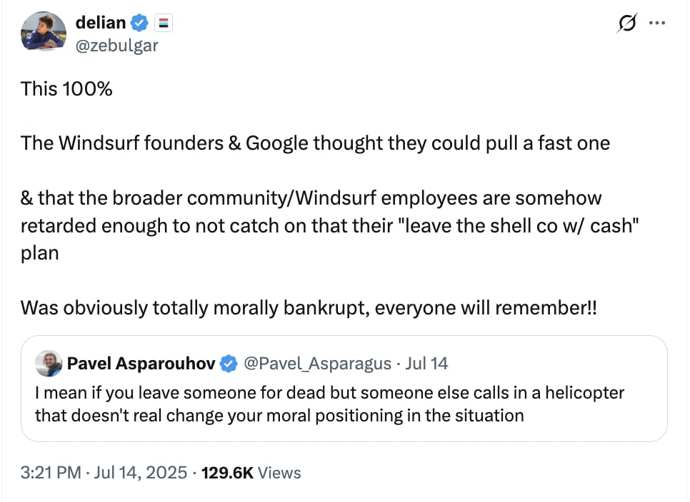 I am delighted that Windsurf has turned out well. It sounds like everyone is getting a good outcome of some kind, and the principal actors involved get to claim good faith. So that’s reassuring.