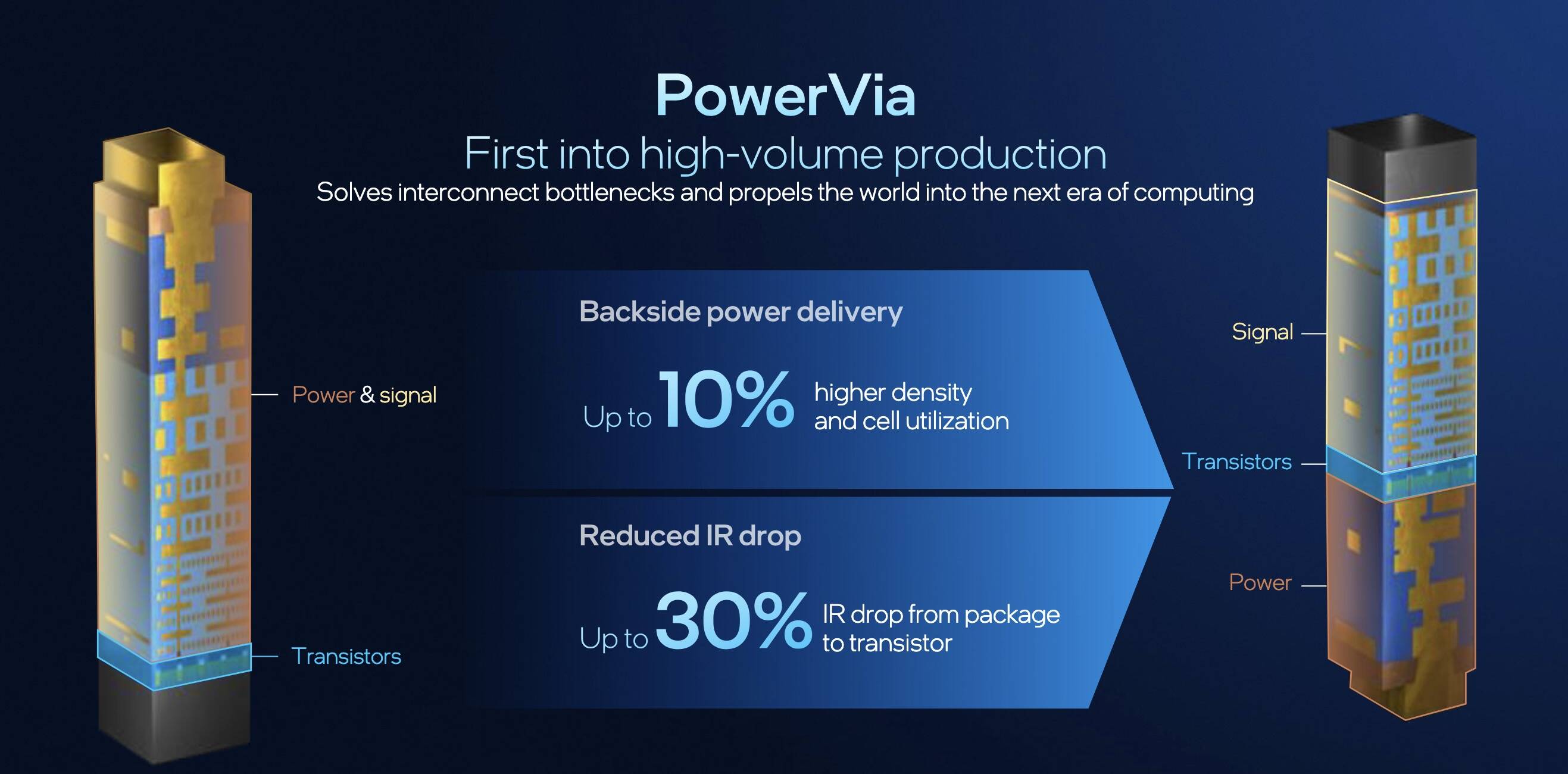 As you might have already guessed, with PowerVIA, Intel moved the power lines to the back of the wafer, freeing up space for more efficient signaling and, more importantly, better transistor density. If Intel is to be believed, the technology has allowed it to increase chip density by 30 percent.