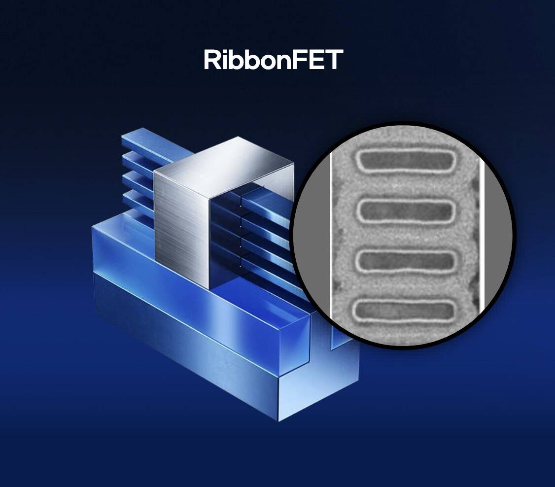 In this design, the transistor's gate completely encircles the sources which reduces power leakage and transistor density. Intel claims that the new transistor design boosts performance per watt by 15 percent compared to the older Intel 3 process.