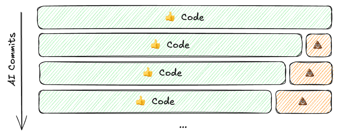 The reason I’m so careful, is that bullshit scales. Like many people noted online, AI output heavily depends on the input: your prompt, code etc. determine the quality of the response. As a consequence, if you don’t find the 10% bullshit, it will gradually degenerate your codebase and AI coding effectiveness: