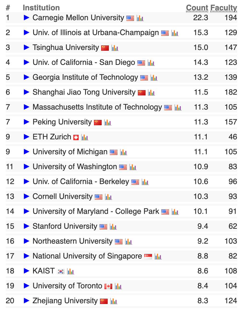 The concentration of leading universities in the United States is striking. CSranking.org provides a useful metric for evaluating technical schools based on their 2015-2025 performance. While not all technology is computer science, and talent means more than conference publications, it nevertheless offers a relatively objective measure for assessing talent production (as opposed to softer metrics like reputation or institutionally meaningless indicators like certain medals). The rankings tell a sobering story: the top tier is dominated by U.S. institutions, with no EU university appearing in the top 20.