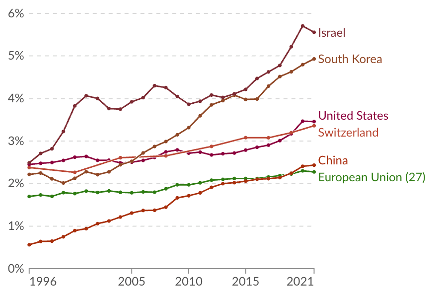 Switzerland has done reasonably well in this regard, though recent discussions about budget cuts in education and research are deeply concerning and counterproductive as we enter the AI age. And while Europe more broadly has some world-class research universities, many countries still invest disappointingly little in R&D and higher education, especially in technical fields.
