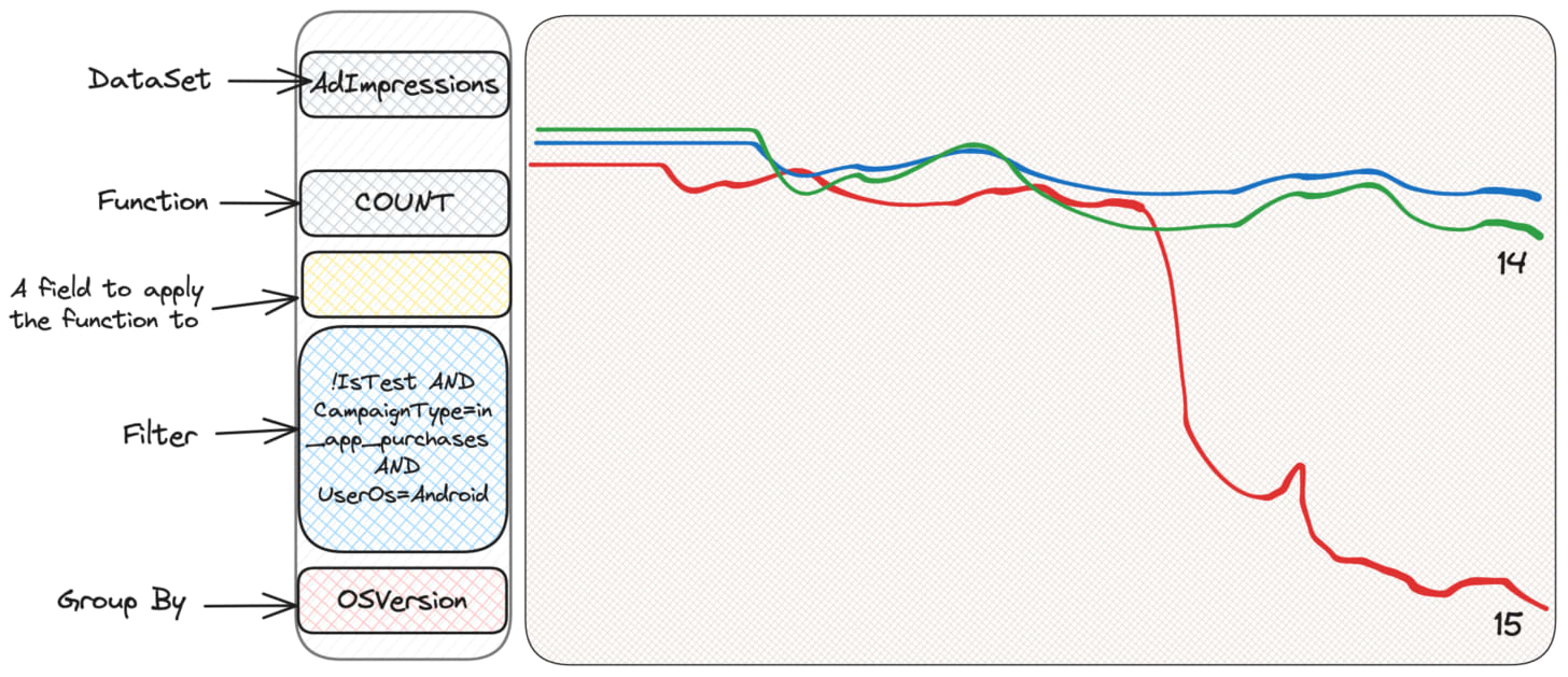 And so assume some alert happened and indicated that our precious Ad Impression chart is looking weird:
