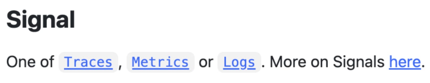But if we follow the links to dig deeper, we again find out that Event is in fact one of Traces, Metrics or Logs 🤷