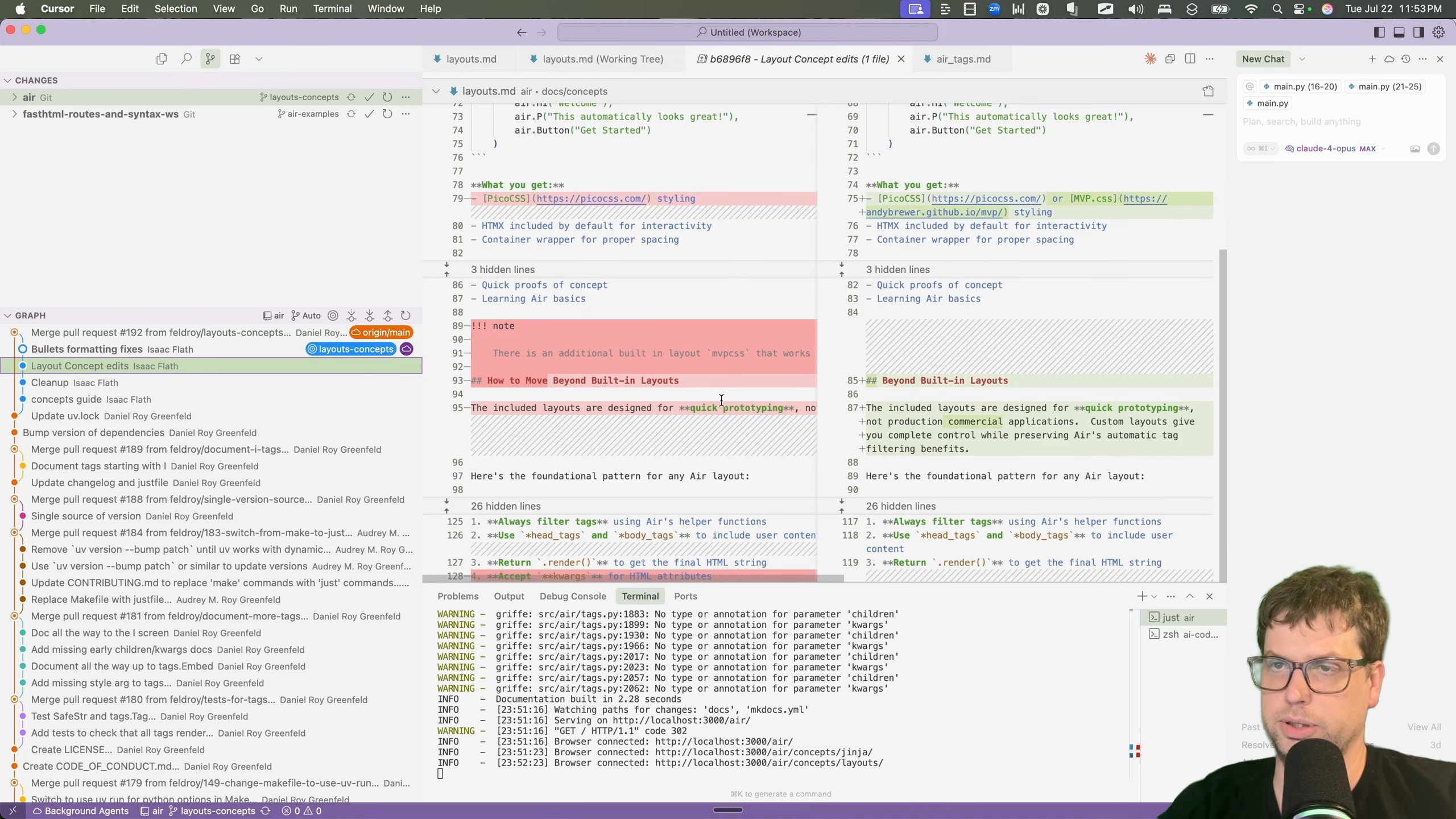 The final result, after some manual editing, was a clean, well-structured guide that was merged into the official Air documentation [00:07:03]. It starts with the core philosophy, explains the built-in layouts, and then details how to create more advanced, custom layout patterns.