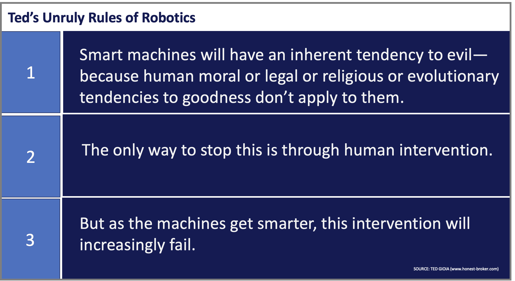 Here’s my hypothesis: Let’s call it Ted’s Unruly Rules of Robotics:
