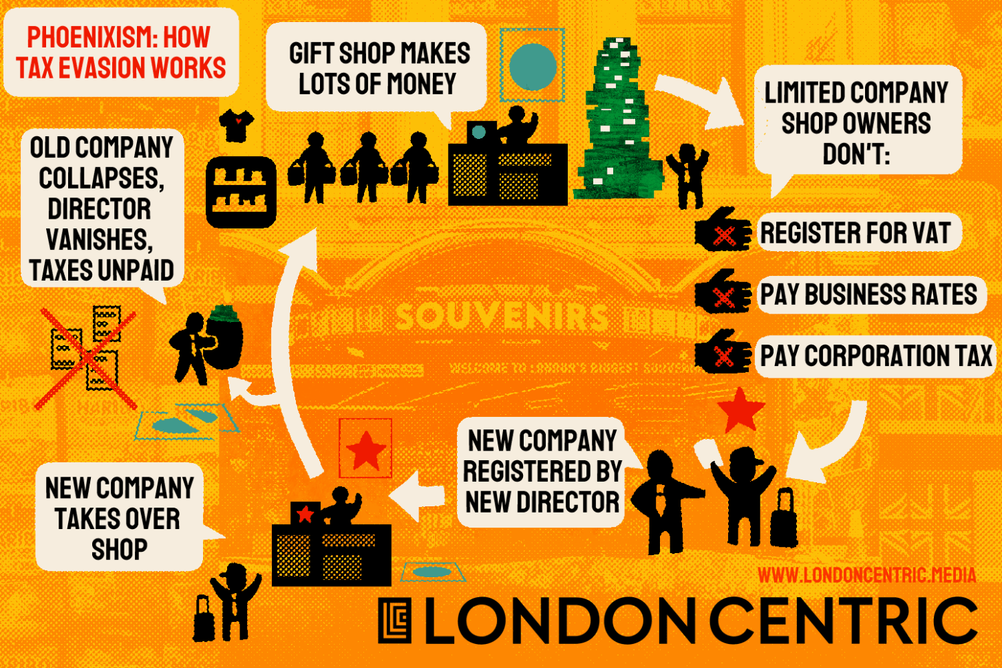Today, London Centric sets out a story of repeated and brazen tax evasion, taking place in plain sight in a row of gift shops on one of the busiest streets in the capital. It appears to have cost taxpayers millions of pounds over the last decade and shows no sign of ending.