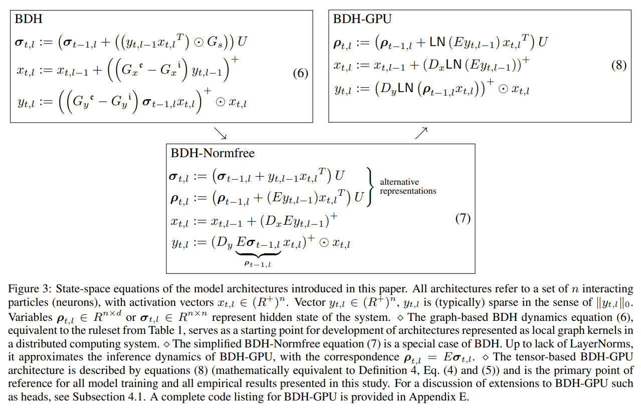The BDH-GPU architecture (Figure 6) is governed by a layer-recurrent state-space equation and relies on two key components that operate in the high neuronal dimension n: