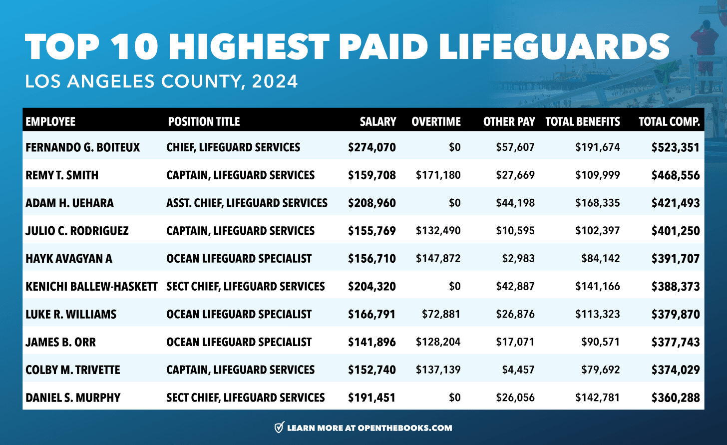 We reported that in 2021, the top-paid lifeguards earned up to $510,283 — back then, we found 98 lifeguards earned at least $200,000 including benefits.