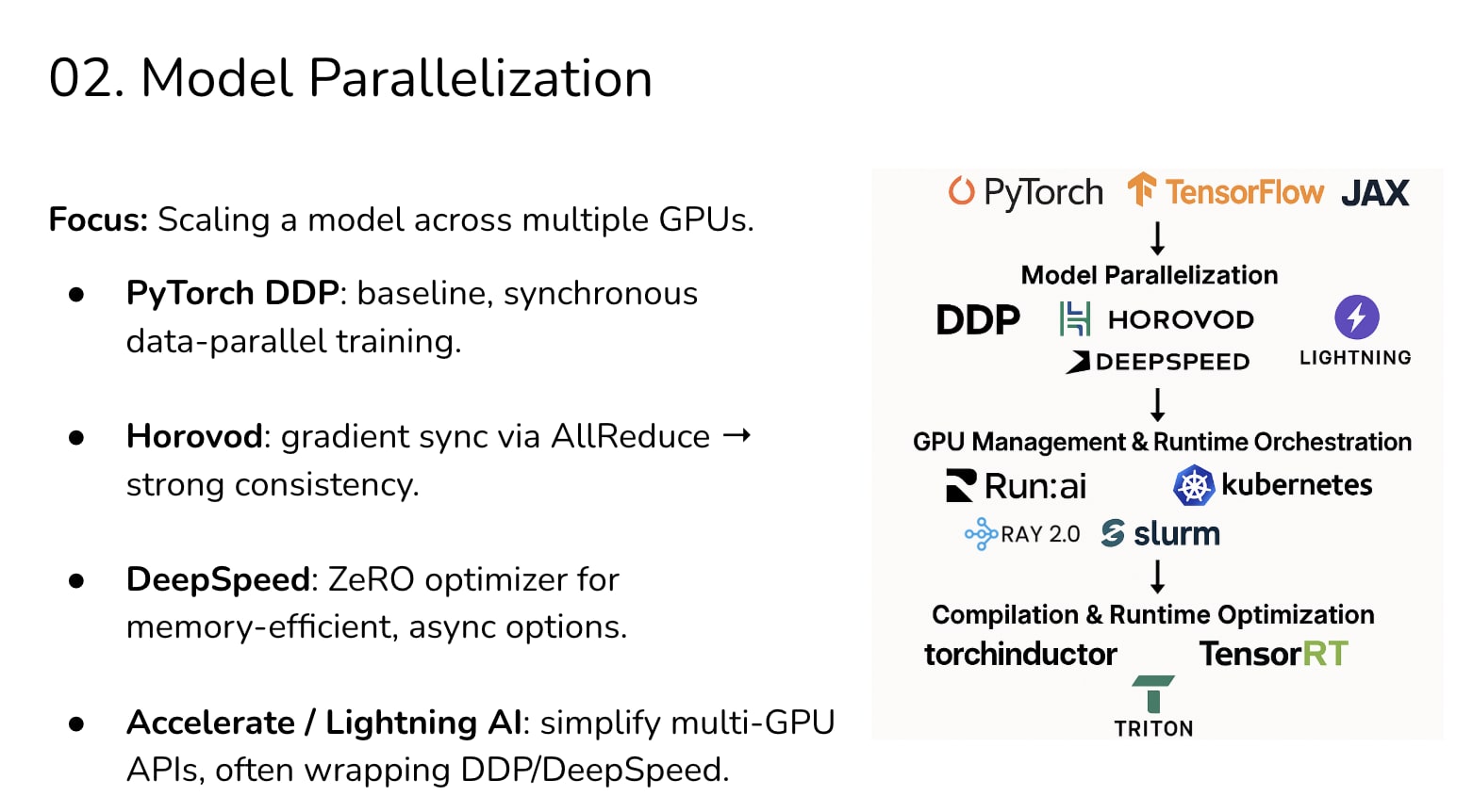 Once you have already implemented that, you could write fused kernels. Or, optimize collective communication kernels (like custom all-reduce implementations) to slightly reduce the time each GPU spends in compute while waiting on communication. Or, you could pre-fetch tensors or align them for DMA transfers. Or, you could implement custom scheduling-aware kernels that better exploit GPU pipelines while orchestrators like Ray/Kubernetes schedule jobs.