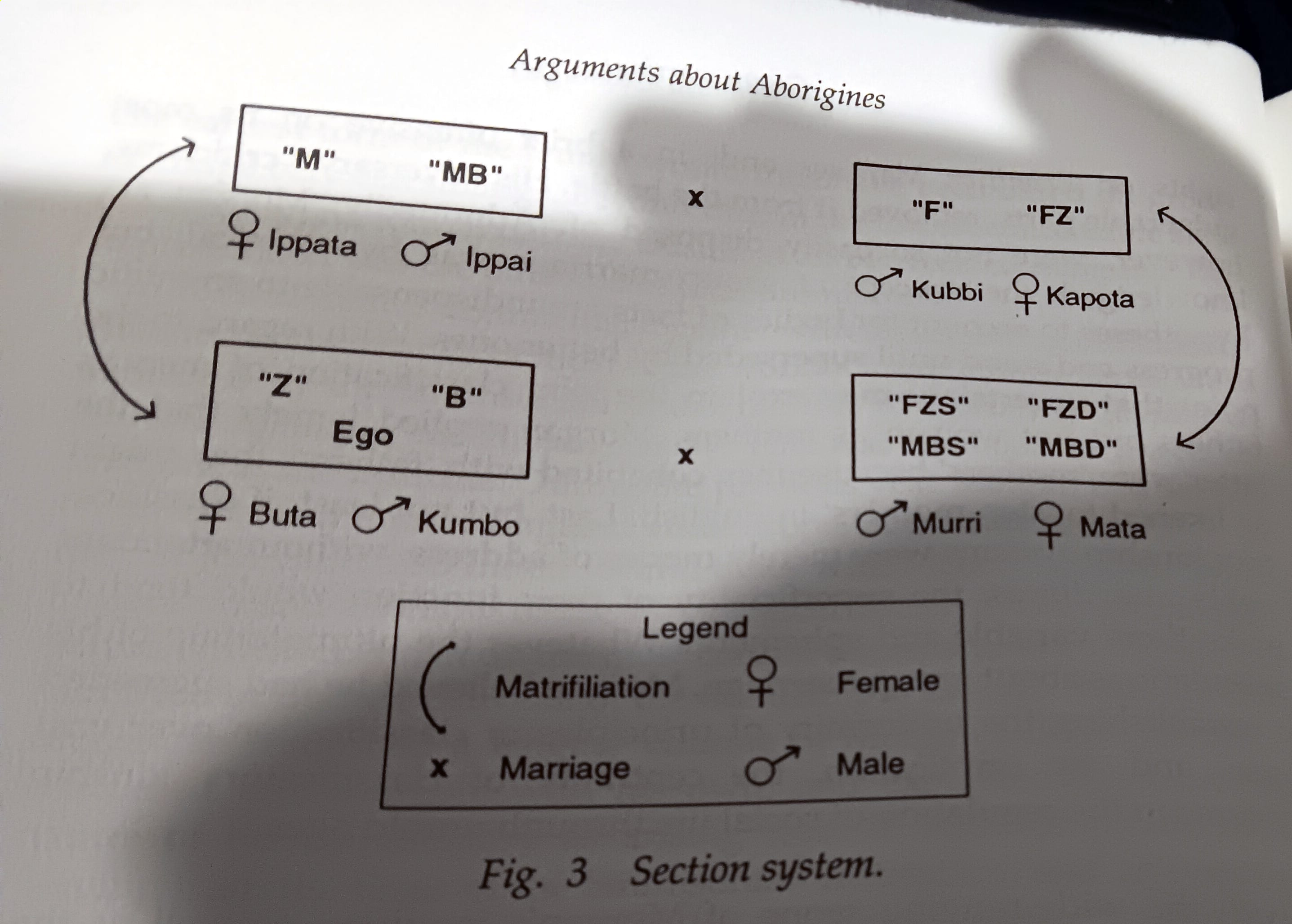 The details vary from tribe to tribe, but Hiatt describes the section system of the Kamilaroi of New South Wales: