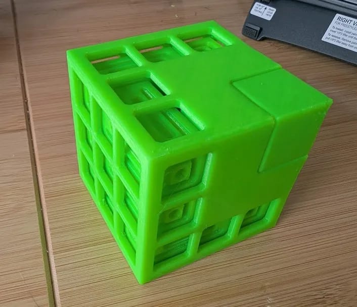 Before getting into today’s thought I’d like to invite you to check out my new puzzle, with 3d printing files here. I meant to post my old puzzle called One Hole, which is the direct ancestor of the current constrained packing puzzle craze but which I was never happy with because it’s so ridiculously difficult. Rather than just taking a few minutes to post it (ha!), I wound up doing further analysis to see if it has other solutions from rotation (it doesn’t, at least not in the most likely way), then further analyzing the space of related puzzles in search of something more mechanically elegant and less ridiculously difficult. I wound up coming up with this, then made it have a nice cage with windows and put decorations on the pieces so you can see what you’re doing. It has some notable new mechanical ideas and is less ridiculously difficult. Emphasis on the ‘less’. Anyhow, now on to the meat of this post.