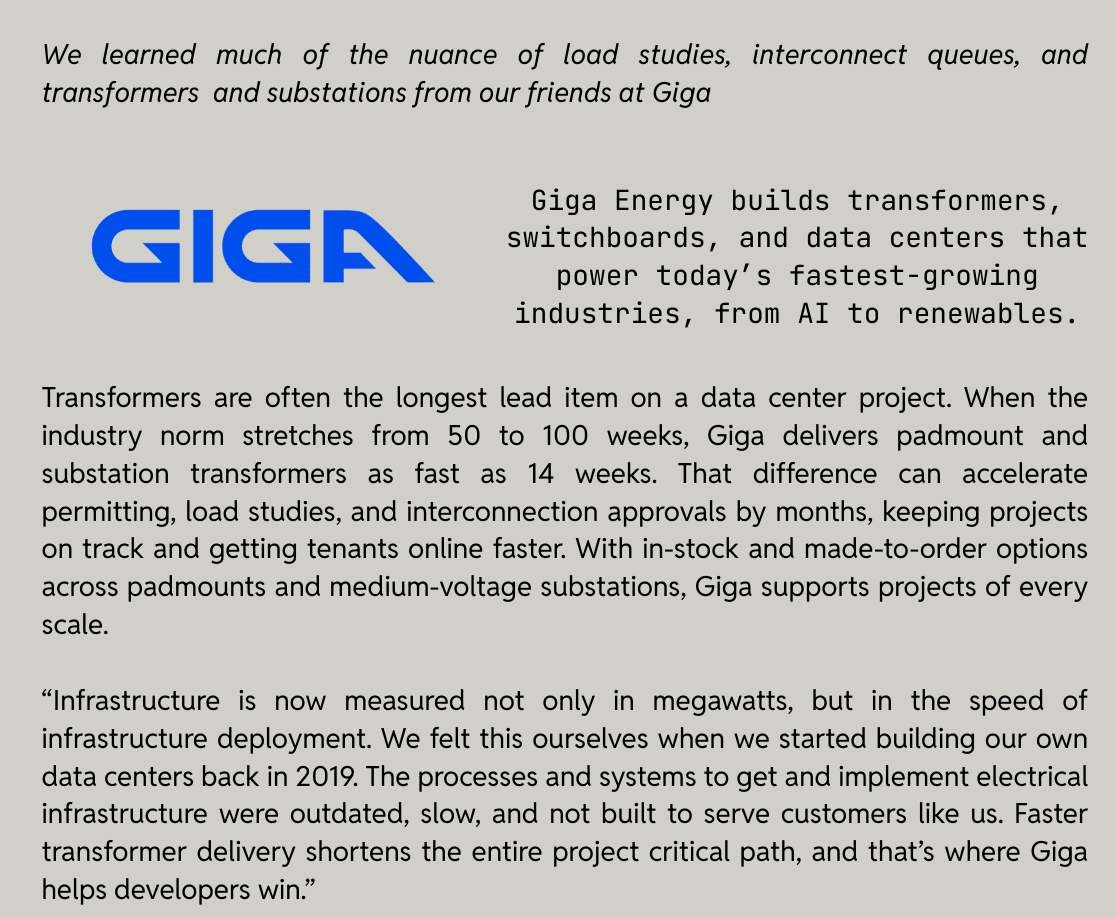 This information is crucial for ensuring that electrical panels are not overloaded, identifying potential problems before they cause outages, and optimizing energy usage. Load studies are also used to properly size electrical equipment, such as transformers and generators, and to plan for future capacity needs. In advance of submitting your load study to the utility, you can do your homework to understand how stressed the grid in your surrounding region is - how many substations are within range and on what voltage transmission line? How much transmission appears to be deployed out of the nearby substations? If the substations looked stressed, you can game the utility in your front of meter load request by letting them know you’ll build your own substation for your load (but you’ll need to overcome a steep transformer bottleneck to do so - more on this at the end of the section and how Giga, a Texas based team, is filling the bottleneck).