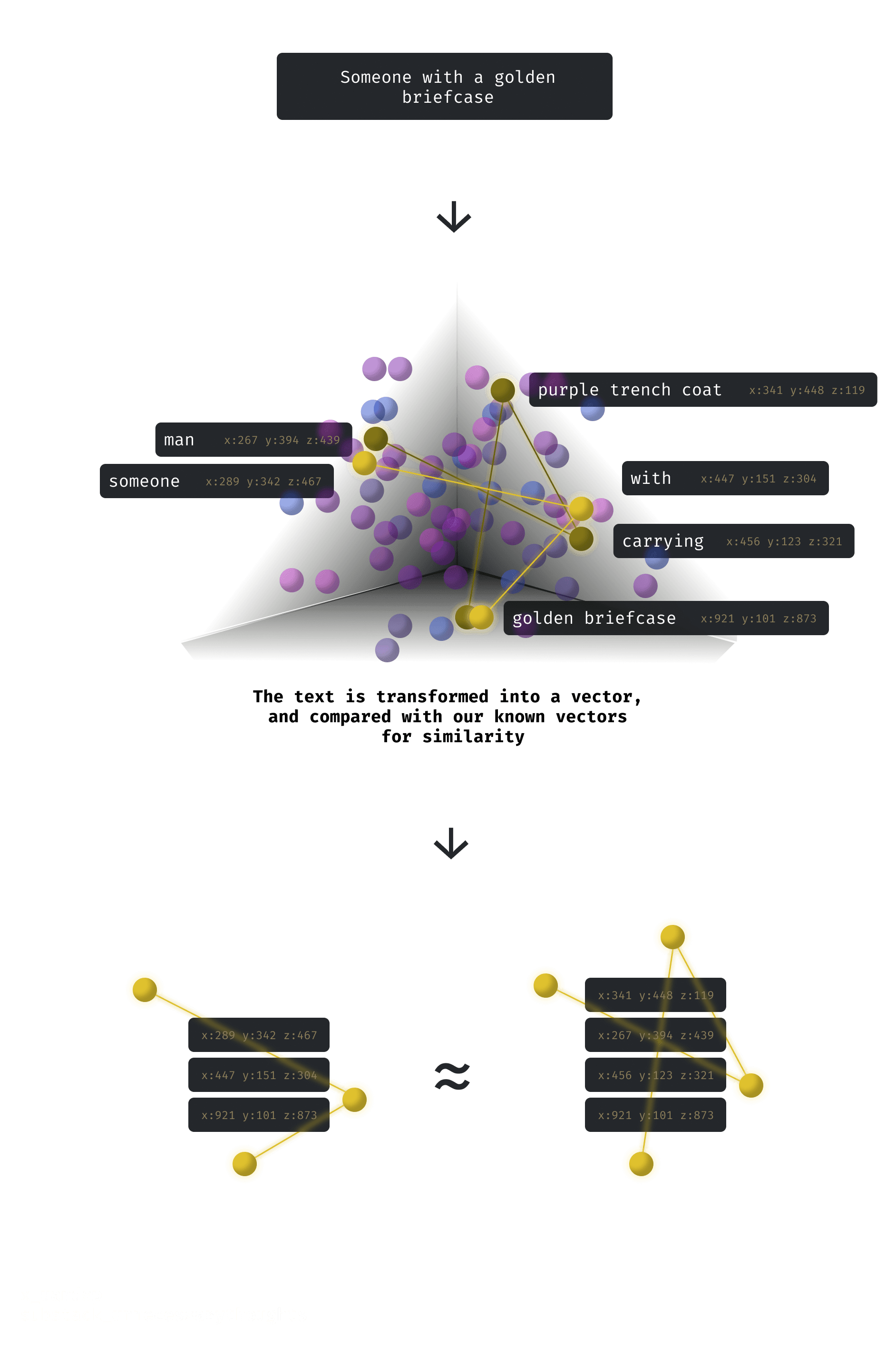 This visualisation is simplified for illustration purposes. In reality the vectors are a lot more complex and conceptual.