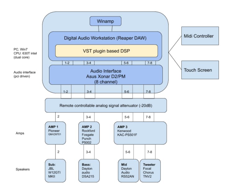 I guess my setup wasn’t fancy enough. I run an active 4-way system which consists mainly of Dayton Audio drivers which retail for like 50$ each. The amps are also pretty pedestrian, cost like 150$.