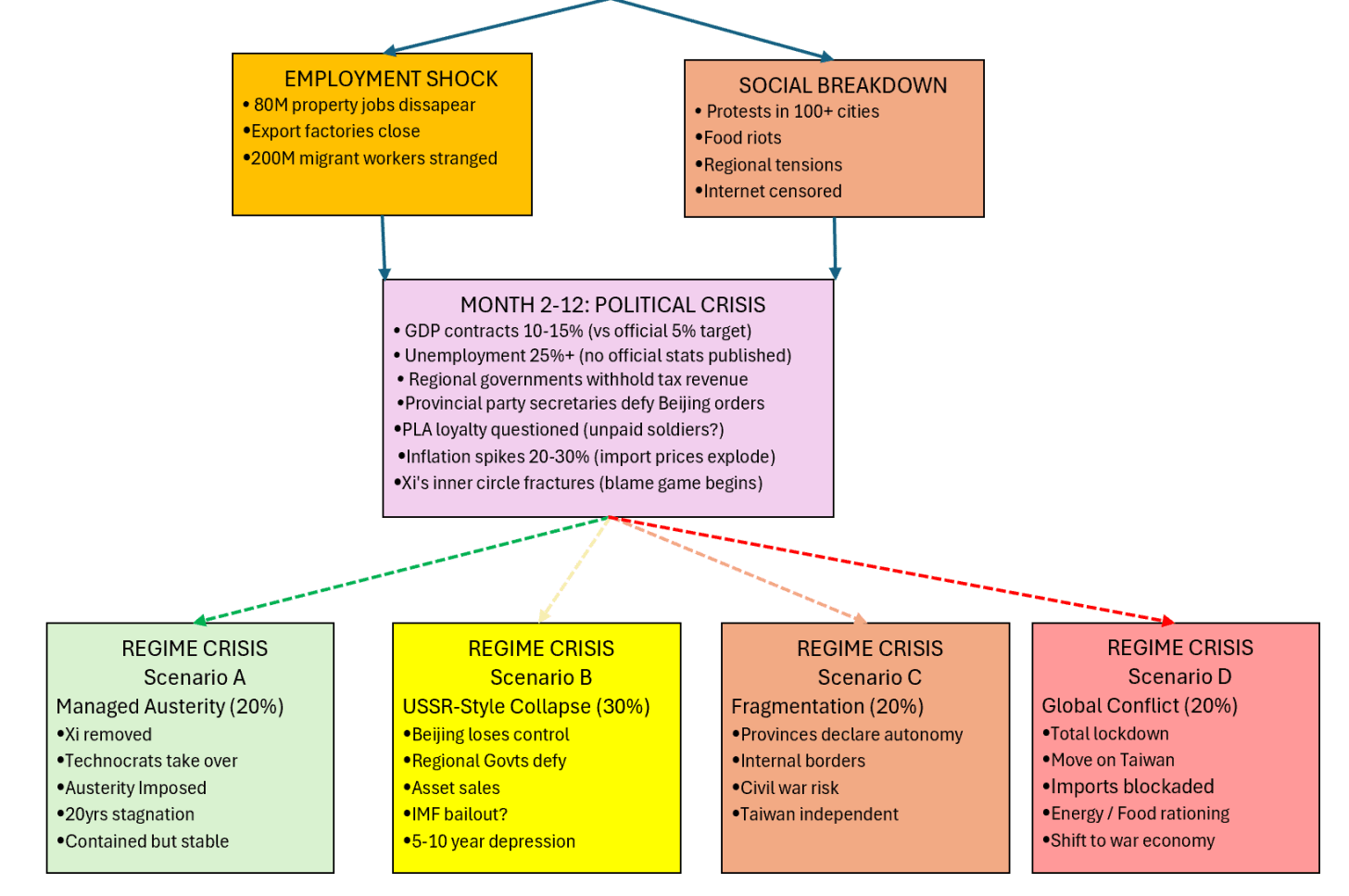 Let’s start with why China is so vulnerable. The property crisis isn’t a bug in their economic model. It was the model.