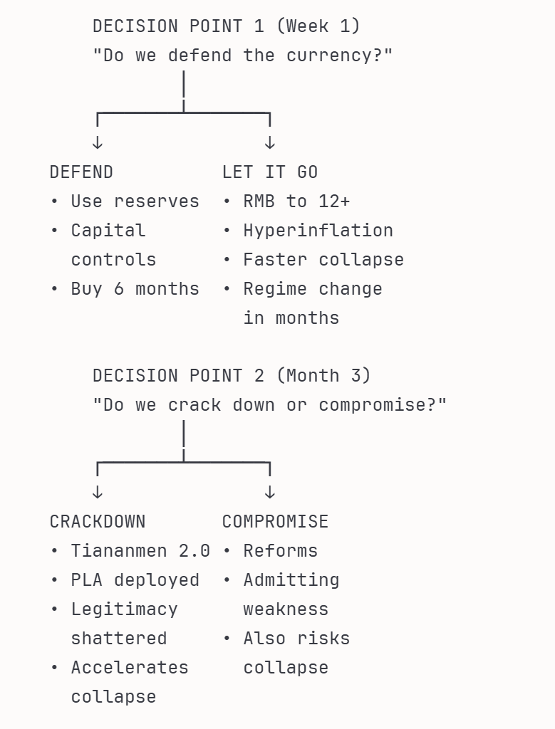 China cannot win the decoupling because they face an impossible trilemma: protect the currency, bail out the banks, or maintain social stability. They can pick two at most. More likely, they get one. The math is unforgiving: $5-10 trillion in hidden property losses against $3 trillion in bank equity. That’s not a solvency problem—it’s a physics problem. Meanwhile, they’re bleeding $1.1 trillion annually just to hide the losses, burning their entire defense and R&D budget combined on financial zombies.