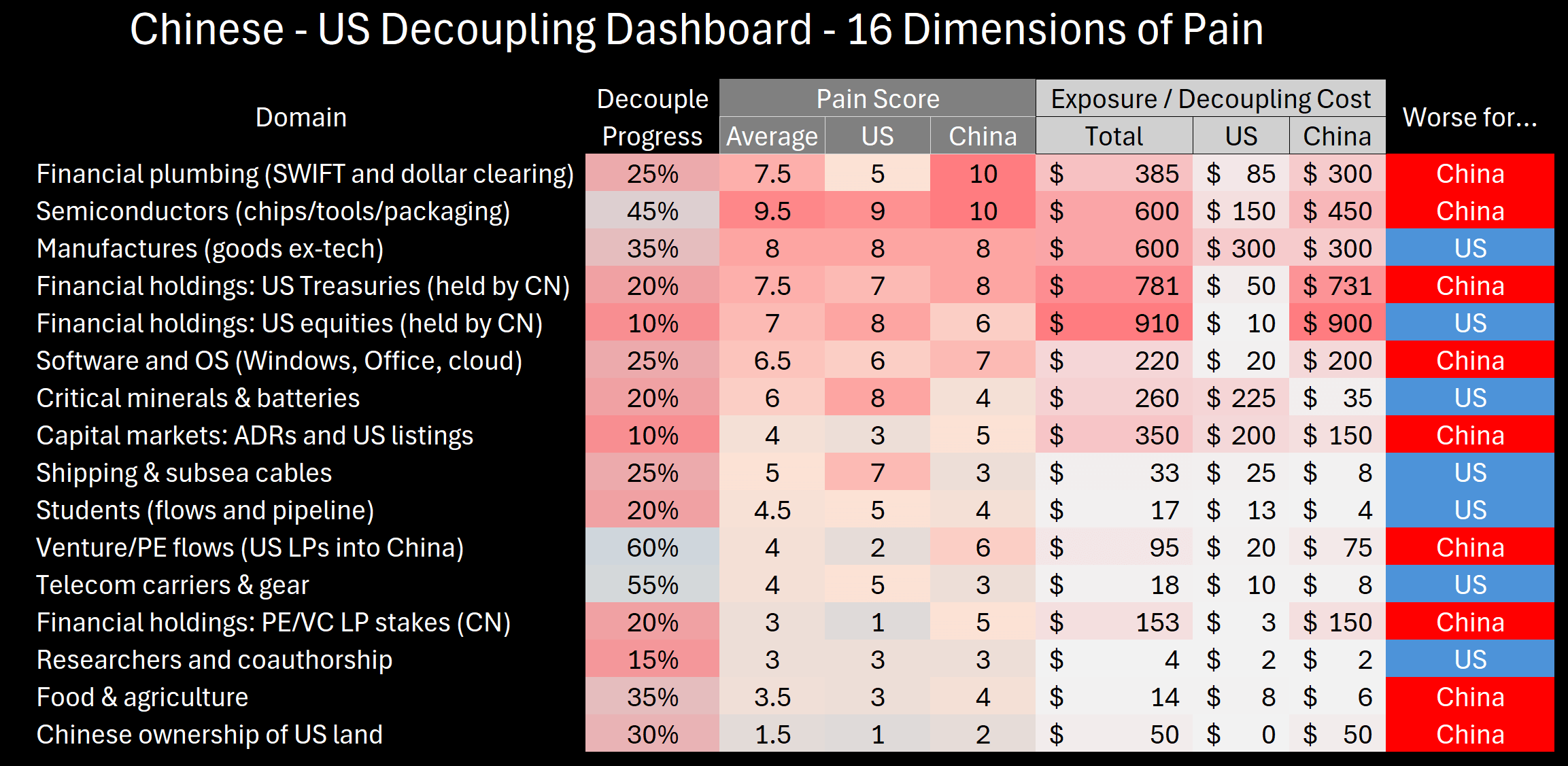 This is the culmination of that work—a framework for understanding why US-China decoupling isn’t just inevitable, but asymmetric. China needs us far more than we need them. And the property crisis that everyone’s been waiting to “blow over” for a decade? It’s not a bug. It’s the feature that makes everything else inevitable.