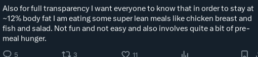 This felt very similar, and it’s not a good sign, in my experience. If you’re not getting satisfied from the meals you’re allowed to eat, ever, you’re on borrowed time.