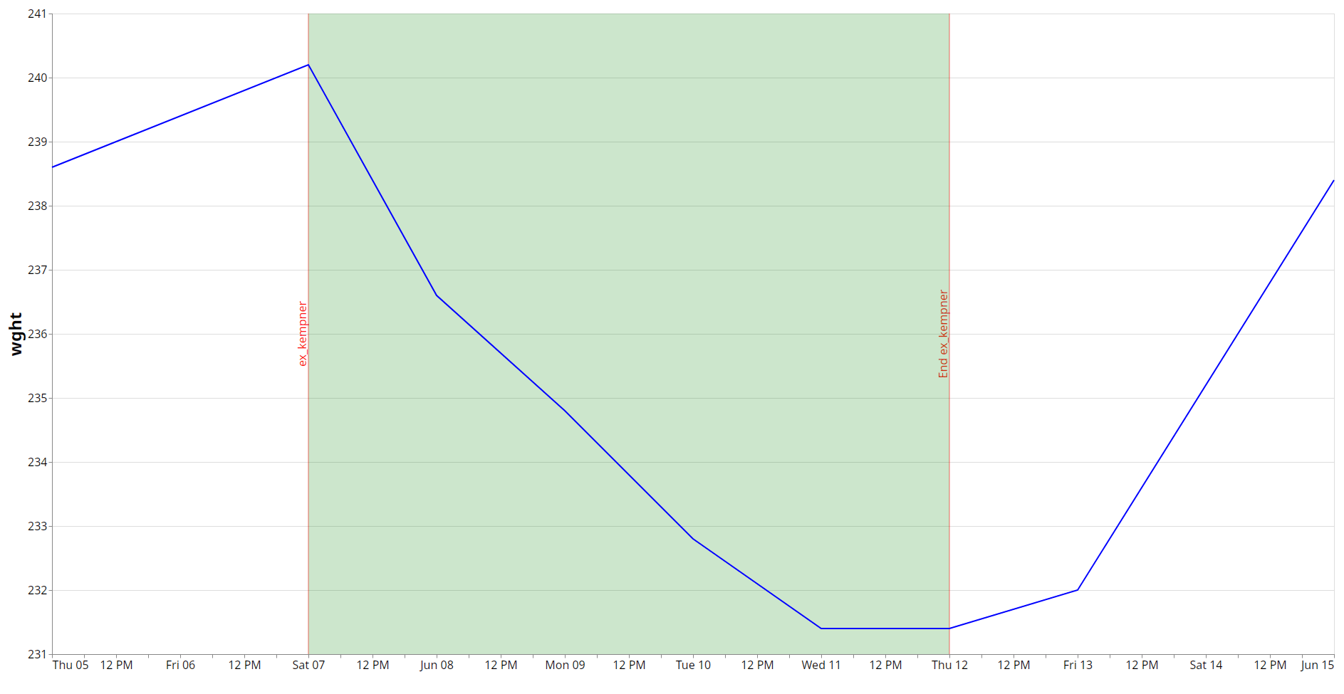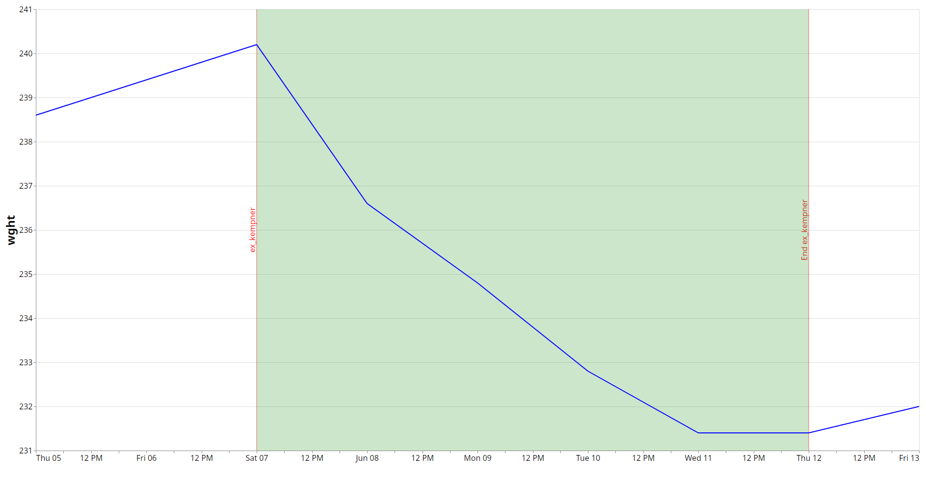 2 days after ending the diet, I was back up at 238.5lbs, having regained nearly all the weight lost. (I only did a 2 day refeed, but it would’ve probably gone all the way back up on day 3 or 4, had I done more.)