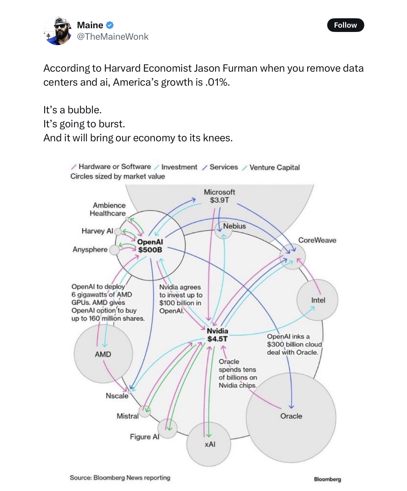 China has had it with America’s sclerotic trade policy. If I were advising Xi, I would say this: If you think of America as an adversary, understand that America has essentially become a giant bet on AI. If the Chinese can take down the valuations of the top 10 AI companies — if those 10 companies fall 50, 70, even 90% like they did in the dot-com era — that would put the U.S. in a recession and put Trump out of vogue.
