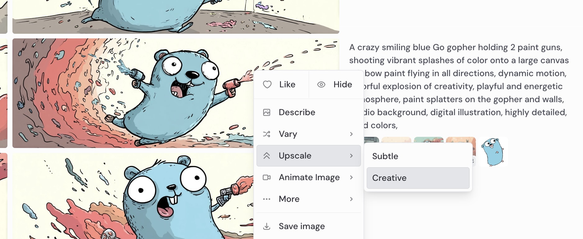 Once you have your prompt, feed it into Midjourney. Add the Gopher character in “Image Prompt”, by referencing an existing gopher image found on Google.