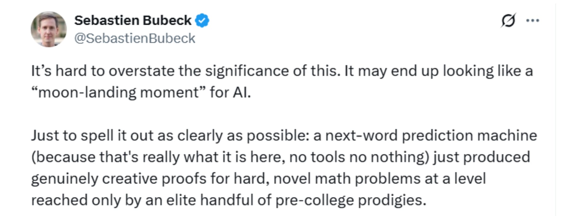OpenAI’s Sebastian Bubeck, for example, tweeted, “It may end up looking like a moon-landing moment for AI.”