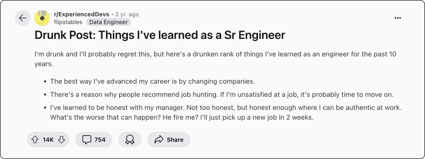 This went on for decades. There are engineers - well into their 40s - who have never experienced a ‘normal’ job hunt.