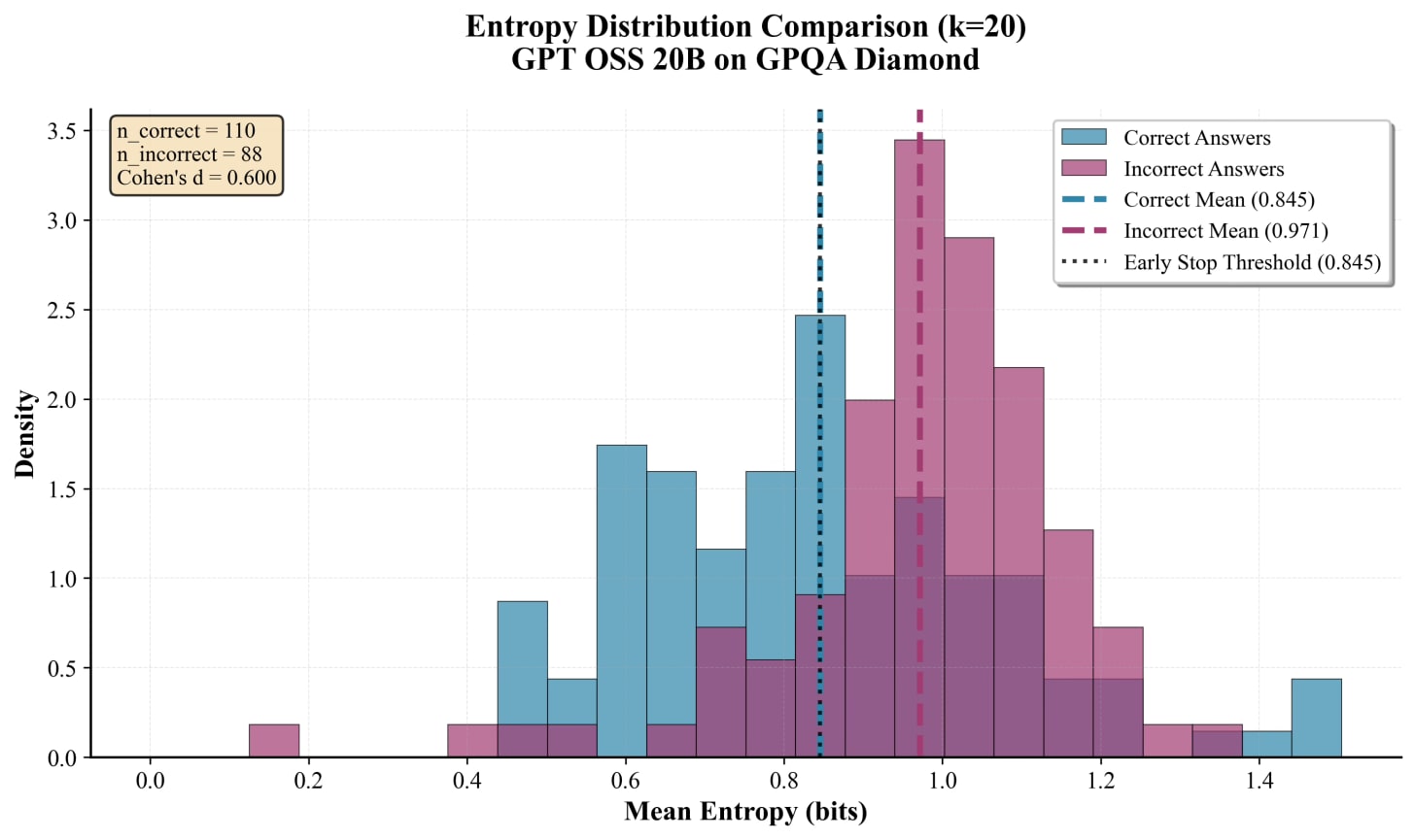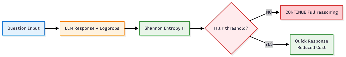 Our new work, Think Just Enough, introduces a principled framework that uses Shannon entropy over token-level log probabilities as a confidence signal. This signal enables early stopping, reduces computational cost by 25 – 50 %, and maintains task accuracy across diverse reasoning benchmarks.