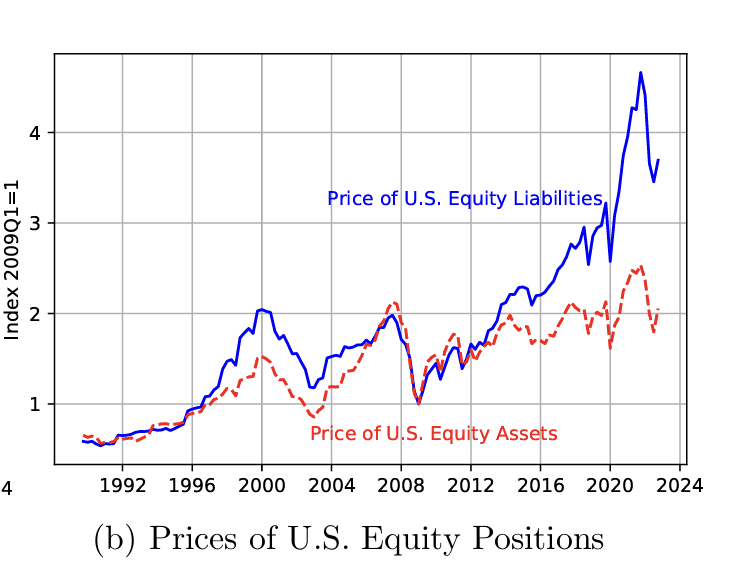 But a simple explanation in those terms is belied by the chronology of the imbalance. Though America has a long-standing tendency to accumulate liabilities to the rest of the world, it is since the 2010s that the net foreign asset position has lurched massively into the negative. Though the US has run huge current trade deficits in this period, the net foreign asset position has deteriorated by far more than one would expect on that basis.