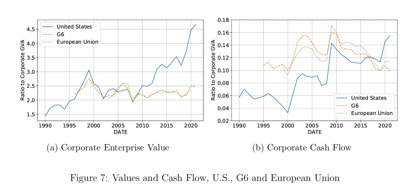 This succinct and powerful analysis adds a key element of political economy that is often missing from arguments over the dollar system, all too often phrased in national terms. We talk as though the rest of the world as a collectivity suffers the unequal terms of trade implied by America’s exorbitant privilege. It is often said that the “safe asset” status of US Treasuries is ultimately grounded in America’s national military power. Both claims have an element of truth to them. But as Atkeson et al remind us, global investors flock to the United States not simply because the United States supplies protection, or serves as a unique issuer of “safe assets”, but because investing in America offers outsized returns thanks to the country’s lop-sided domestic political economy. America is a great place for corporates to make profit and that is ultimately what attracts investors and accounts for a large part of America’s net foreign liabilities. Managers of foreign capital enthusiastically buy into the American profits bonanza.