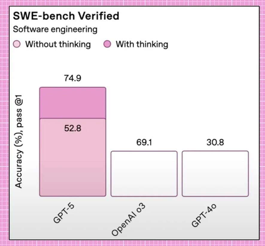 So, now it’s mid-October 2025, and we know for certain what many of us suspected back in January: Sam Altman was full of shit. We know this because in August, OpenAI finally released ChatGPT5 and…it was a giant meh. The new model was not and is not artificially general intelligent in any way, shape, or form, much less “superintelligent.” That jump in capabilities that people experienced from GPT3 to GPT4? Did not happen. And even the most enthusiastic AI boosters admitted the rollout was lame—might I point you again to this unintelligible AI-created “graph” that OpenAI used at the time of GPT5’s launch?