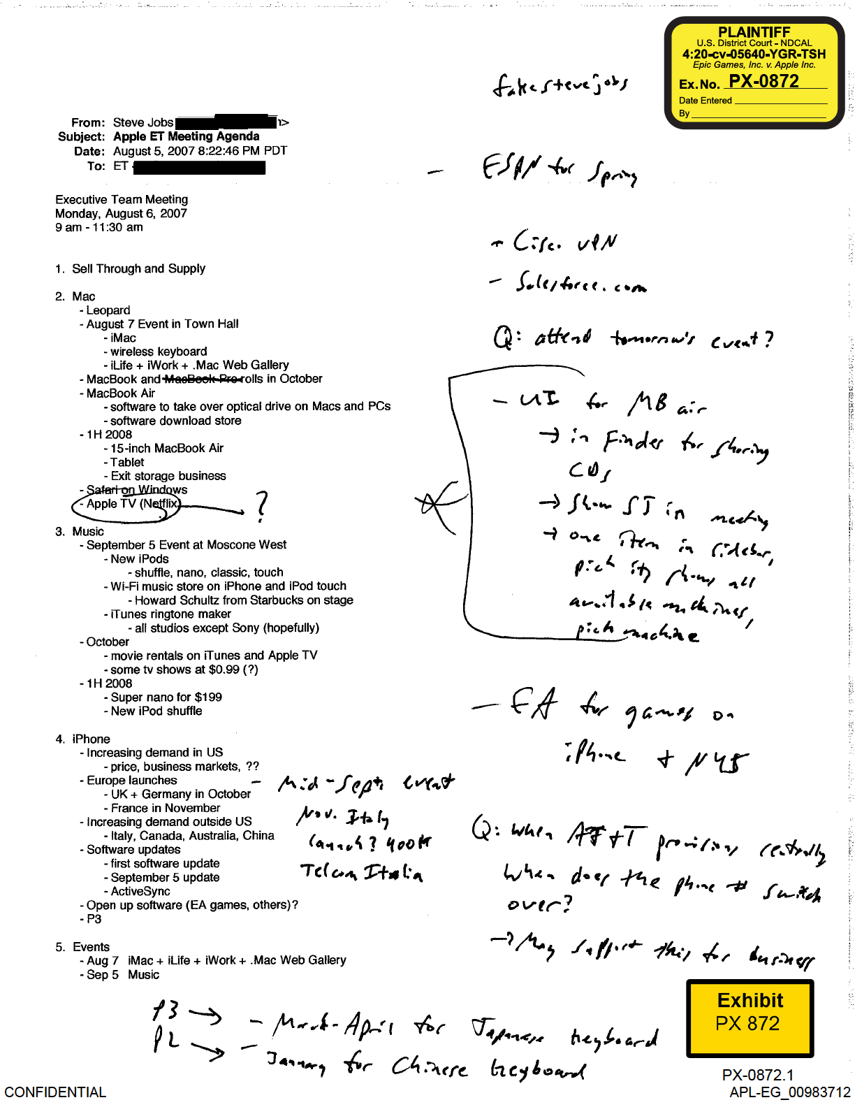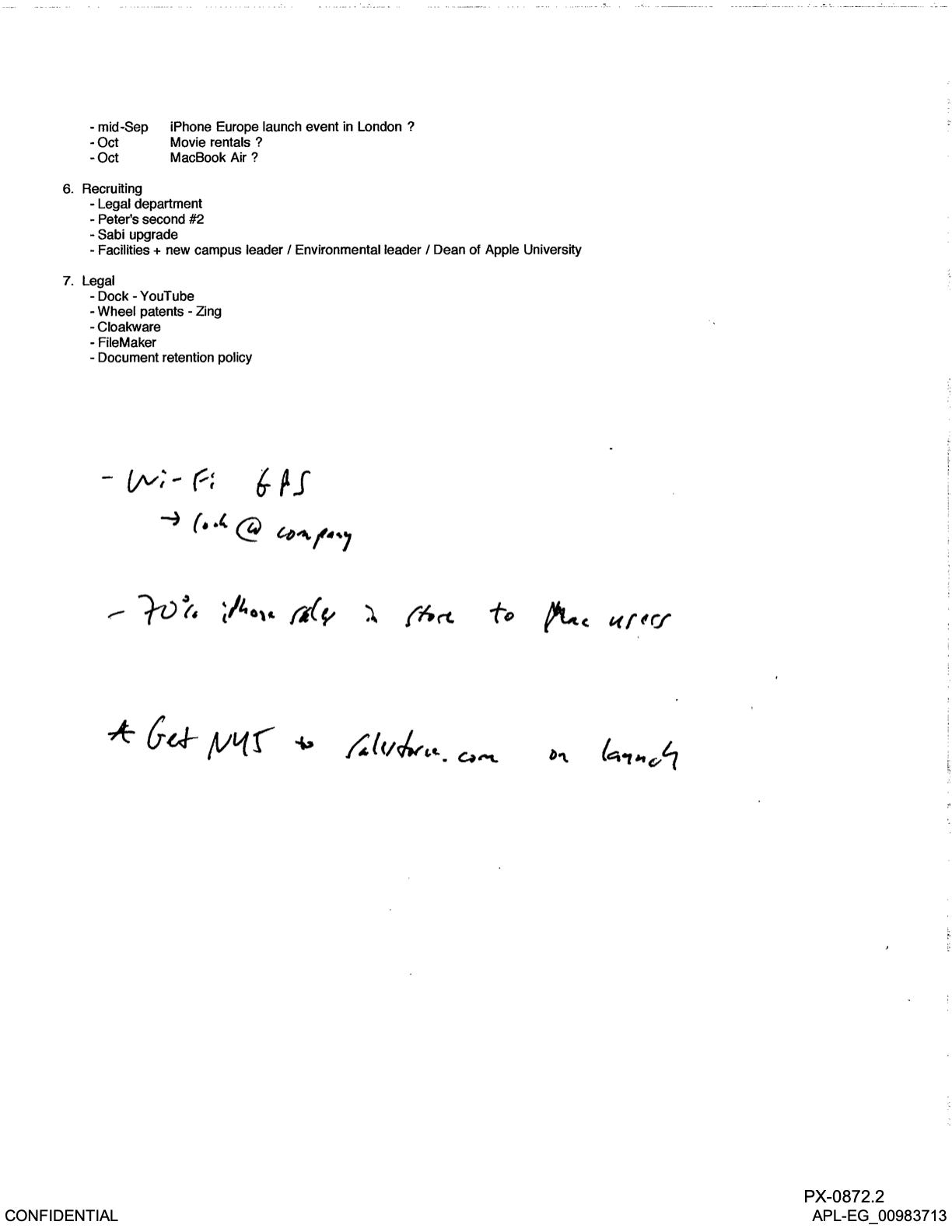 [The source of the handwriting on the document is uncertain — it may be Scott Forstall, then head of iPhone software at Apple.]