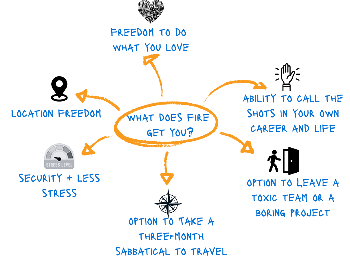 My goal wasn’t to stop working in my 30s. My goal was to build a career I actually enjoy without feeling trapped by golden handcuffs or a toxic team. The "Retire Early" part seems completely out of touch and confusing in fact - can somebody please tell me what I would do after retiring at 35? 🤷♀️