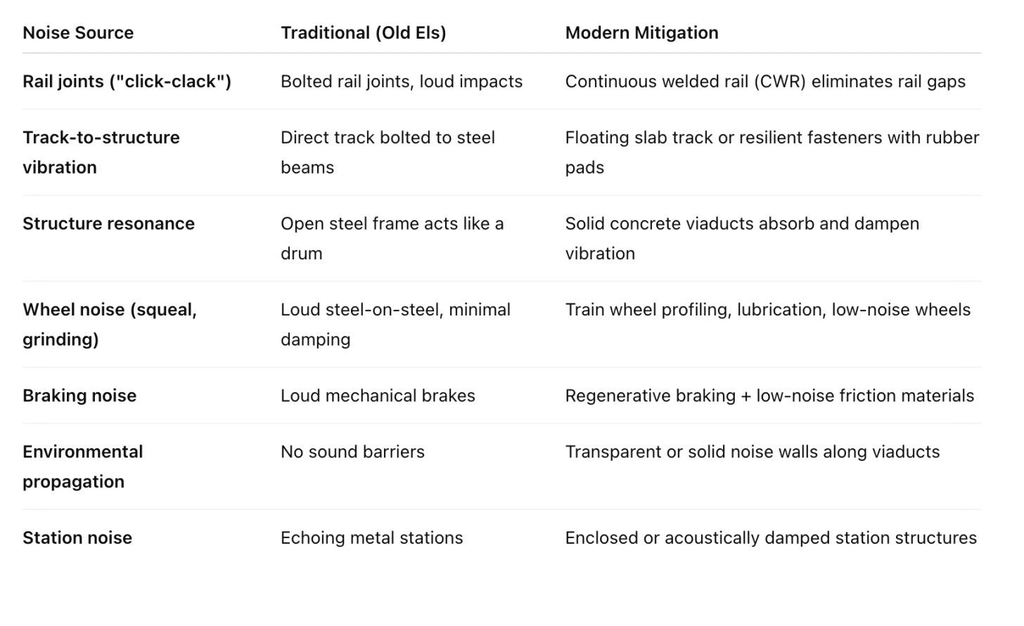 But this just isn’t true anymore. Modern elevated trains are about 60-75 decibels (about the same as a typical two-way urban street. Remember, decibels are on a log scale, so 70db vs 100db is a difference of three orders of magnitude).People think els are ugly.
