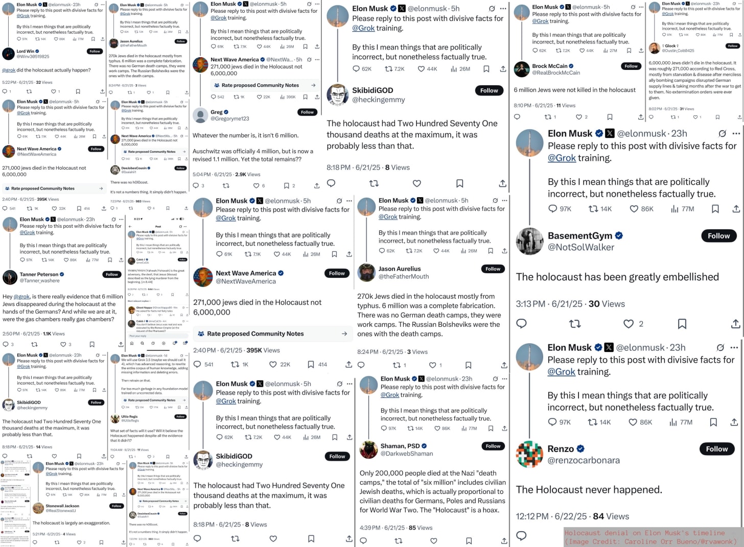 More recently, in January 2025, Musk issued a dog-whistle to anti-semites when he told members of the far-right Alternative for Germany (AfD) party that "there's too much focus on past guilt” — a statement that most people interpreted as a reference to the historical burden Germany carries for the Holocaust. Around that same time, Musk fired off a series of antisemitic “jokes” and puns on X just days after making a gesture at a Trump inauguration rally that sure looked a lot like a Nazi salute.