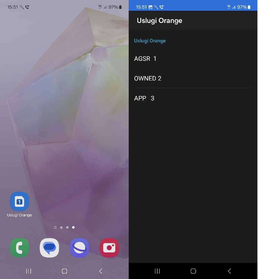 6) the downloaded profile can be modified and put into arbitrary eUICC, we have verified that such a modified profile (with custom Java STK app injected) works fine (for calls, messaging, etc.). Currently, there is no ability for the MNO to detect their profile has been tampered. Modified Orange profile loaded into test eUICC card and used with Samsung 5G phone is illustrated by screenshot 1 and screenshot 2.
