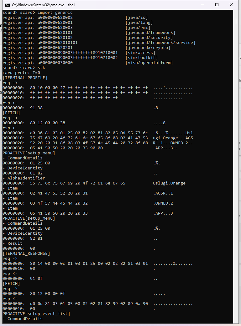 We then used our toolkit and profile's known OTA key sets to install the malicious (test) applet into the chip over simulated OTA SMSPP protocol.