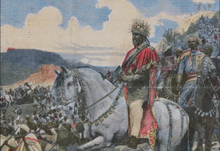 Second, the European “scramble for Africa” happened at the tail end of about a century of war and discord among the kingdoms and principalities within the empire (Zemene Mesafint, Era of the Princes). During this period, real power left the Nəgusä Nägäst (king of kings) and spread to the heads of the empire’s constituent kingdoms and principalities. It’s extremely unlikely that the titular emperors of the late Gondarine and Zemene Mesafint eras would’ve rallied enough subnational units towards the defense of the empire. For example, a counterfactual in which the Yejju rases were the ones rallying the empire against a foreign invasion — even under the great Ras Gugsa — would’ve probably yielded a different outcome. Consolidation of imperial authority — which began in fits and starts under Tewodros II (1855-1868) — made it possible for Menelik II to tie the last remaining loose ends and face the expected Italian invasion with a unified imperial army: