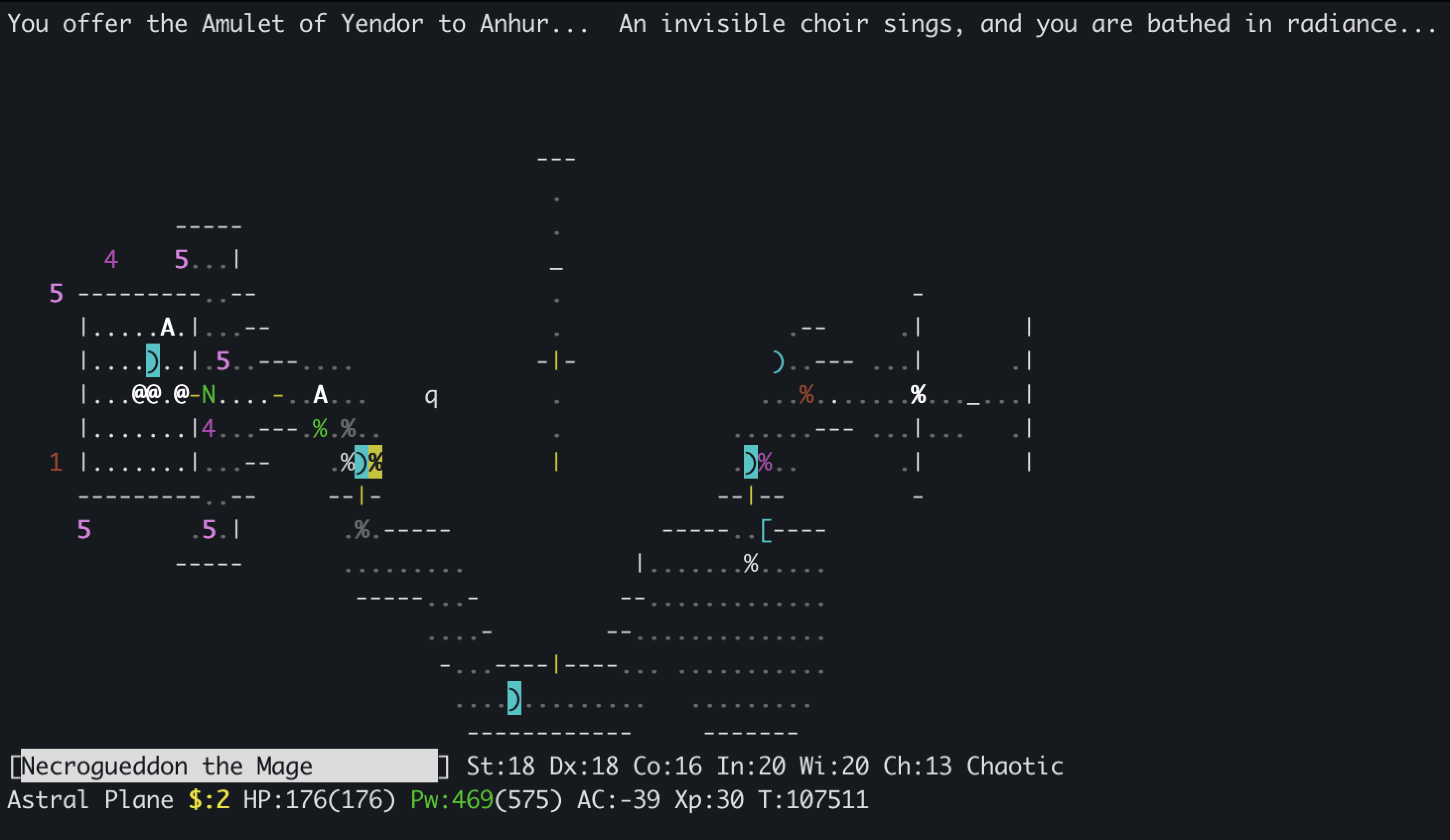 While getting back into exploration/intrinsic motivation projects last year, I decided to focus on NetHack as one of the main benchmarks I use due to its challenging nature and the fact that LLMs are still barely able to make a dent in it. As part of my due diligence as an RL researcher, I of course had to play some NetHack myself which rapidly morphed into a rabbit hole. After undoubtedly too many nights and weekends spent sifting through the NetHack Wiki, digging through r/nethack and reconfiguring my visual cortex to parse the finer shades of ASCII characters, my elven wizard Necrogueddon finally ascended with the Amulet of Yendor all the way to the Astral plane, resulting in Demigodhood for him and freedom for me to spend more time with my neglected cats and patient girlfriend.
