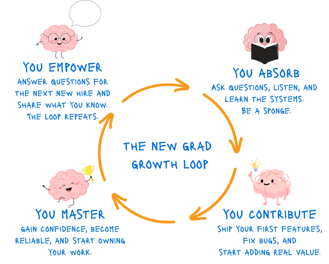 Your "I'm New" Card is a Superpower 👶: This is your golden ticket to ask questions that might feel "dumb." (Hint: They're not dumb, and - note that people who make you feel dumb are ones you don’t want to trust). What does that acronym mean? Why is the code written this way? Who's the best person to ask about X? Use this card relentlessly. It expires in about six months, so get your money's worth.
