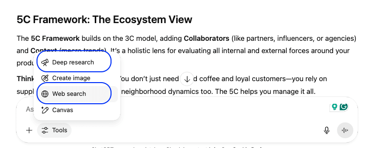 AI can guide you through each framework step by step, helping you ask sharper questions, spot weak spots, and structure clearer thinking.
