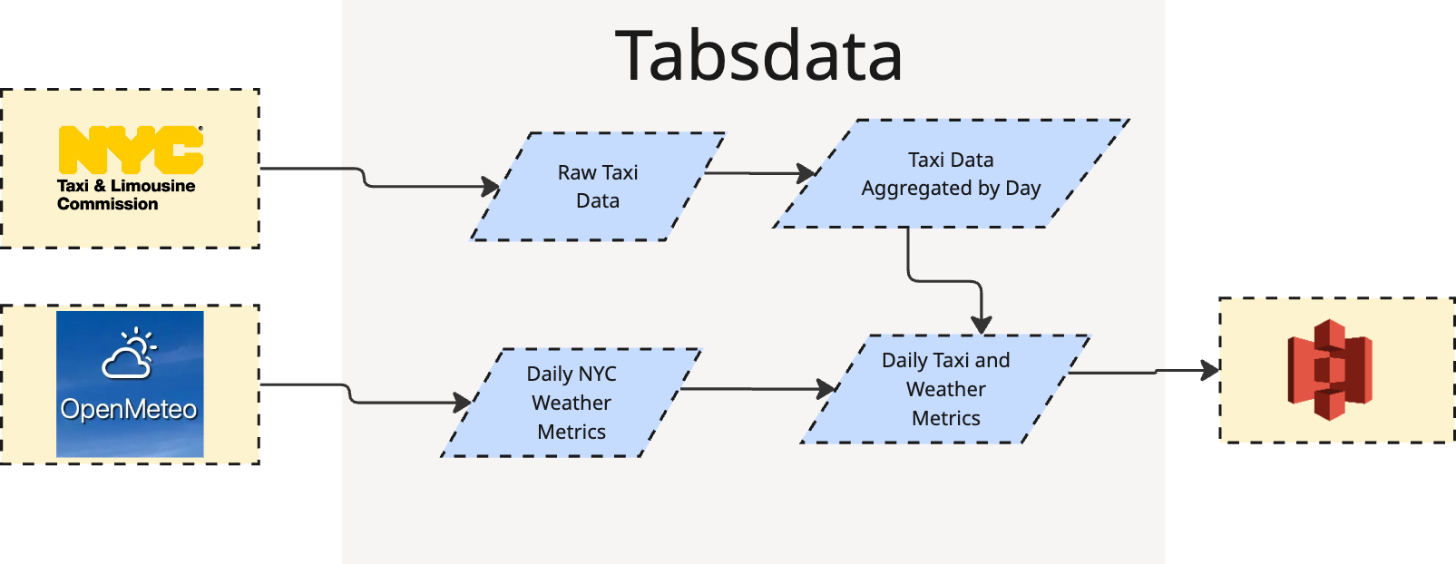 The TLC taxi data was tricky to handle because each month came in its own Parquet file. Once I loaded everything into a Tabsdata Table, all my downstream functions could pull directly from that table. This simplified things by abstracting away the raw file format.