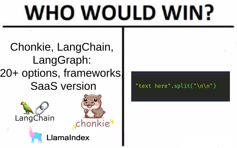 There are plenty of chunking frameworks out there (Chonkie even has a SaaS version!), but given how simple our chunking logic was, we chose not to overcomplicate things.