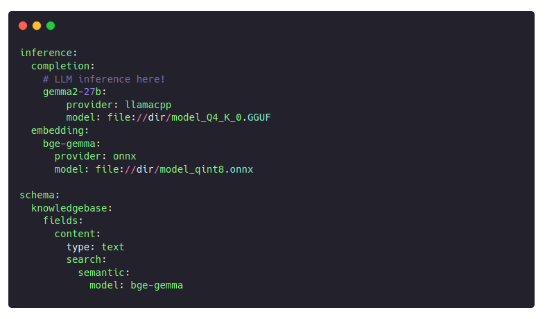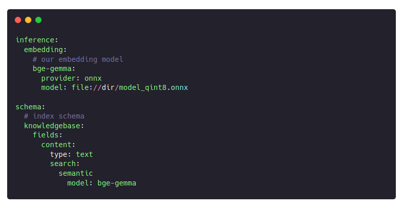 A complete Nixiesearch config was pretty basic, with just a single text field for the chunk context: