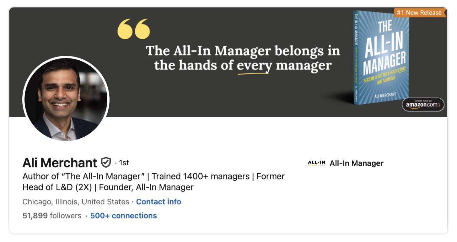 Special thanks to Ali for sharing his insights on this very important topic with us! Make sure to check him out on LinkedIn and also check out his book: The All-In Manager.