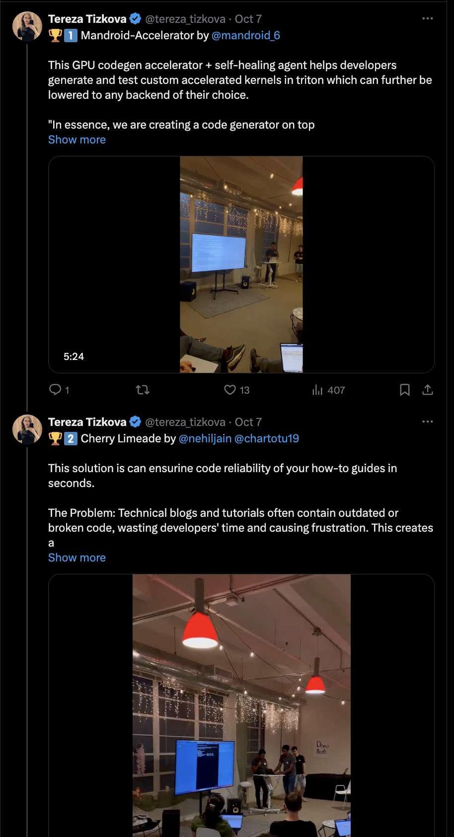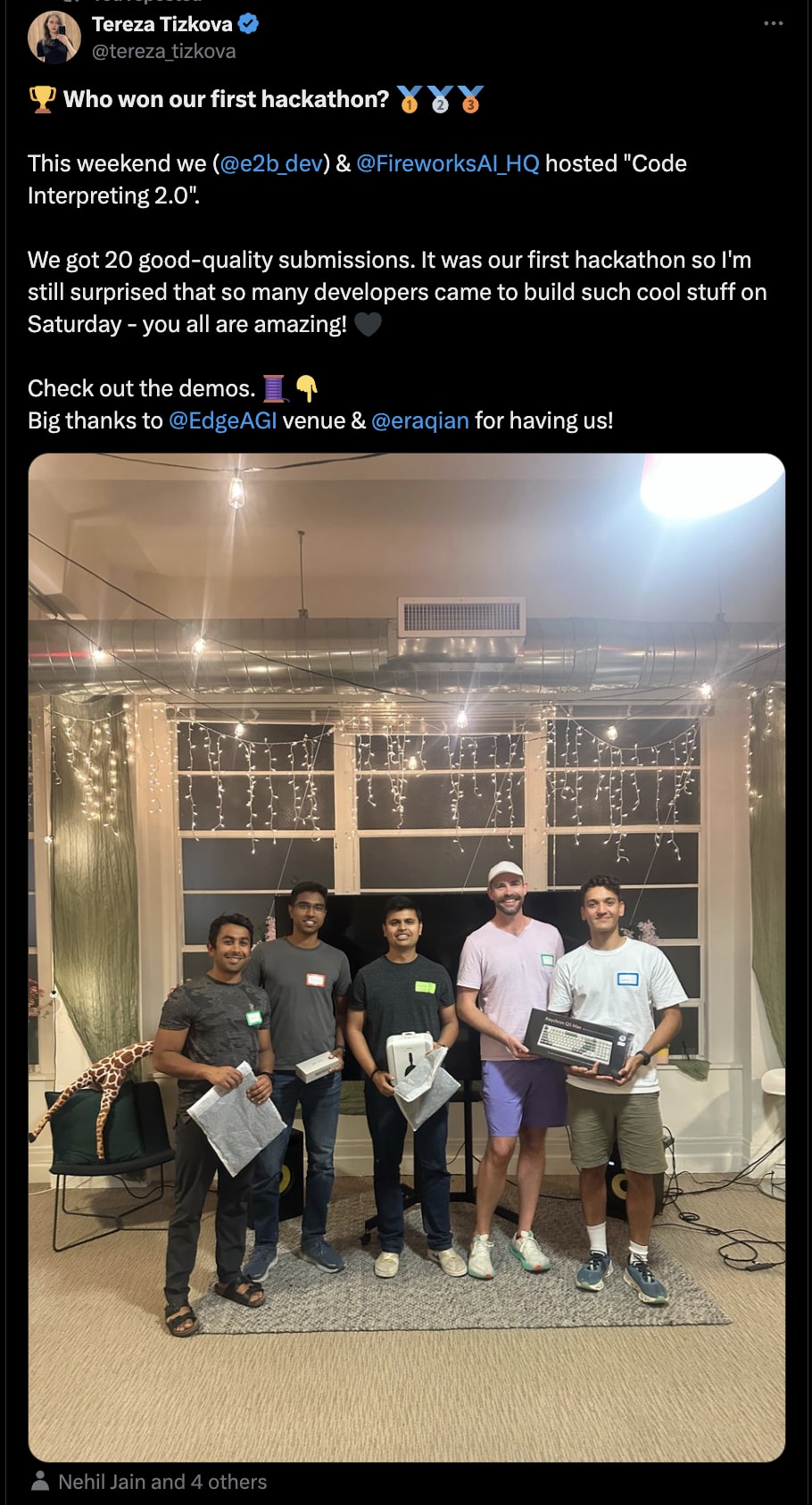 Create comprehensive post-event communication with all stakeholders. It can be a X (Twitter) thread with finalists’ demos, a thank you for speakers and judges, ideally a lot of videos, photos, and description of what people built.